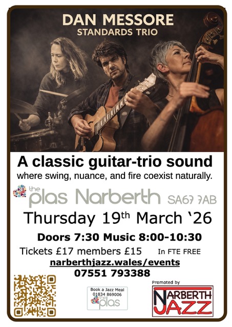 Join us for an unforgettable night at Narberth Jazz, on Thursday 19th March, where three outstanding Wesh artists Dan Messore (Guitar), Liz Exell (Drums) and Paula Gardiner (Bass) will come together to deliver an exceptional musical experience.
